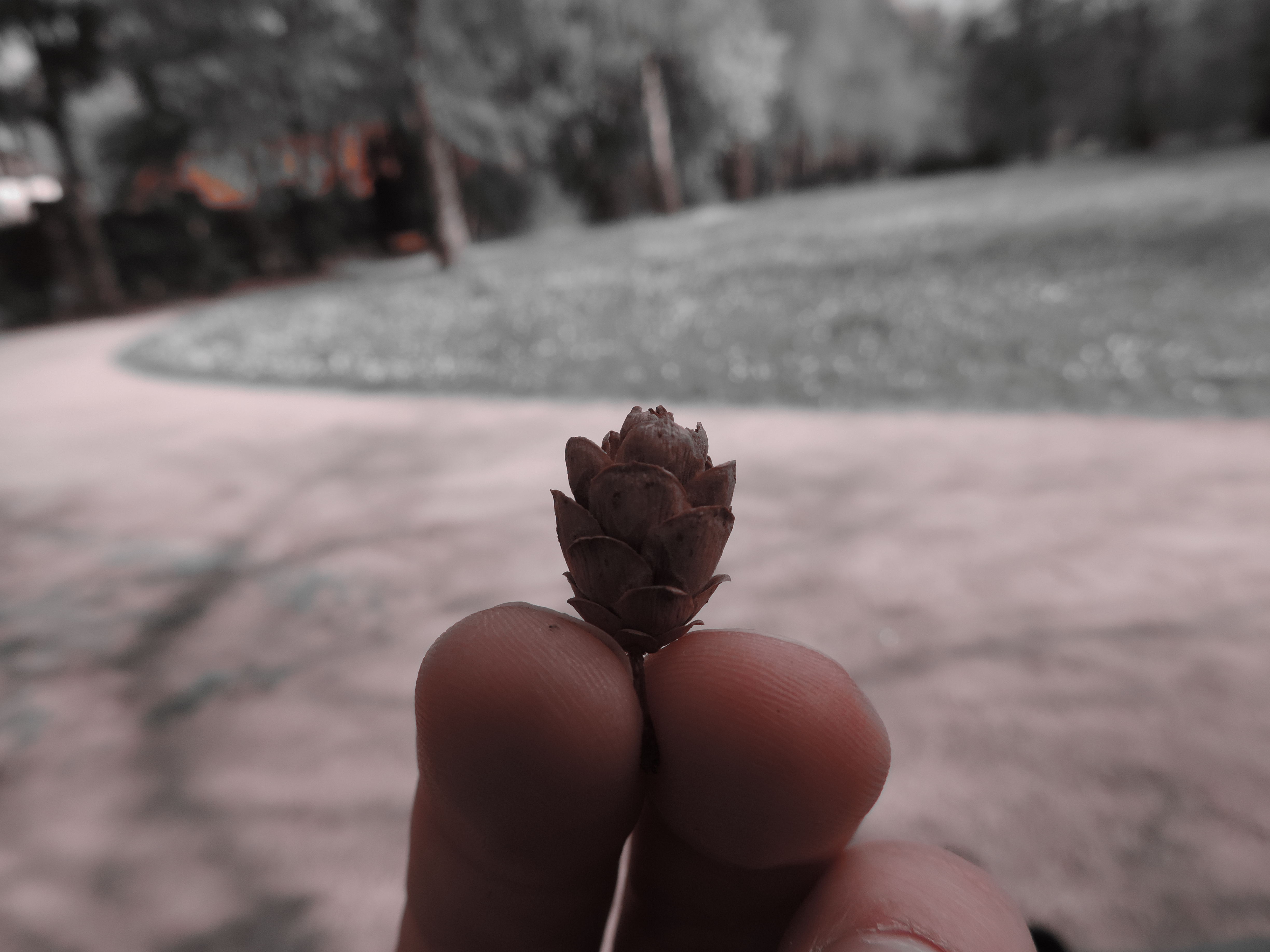 A little cone that Mojca found. \ Majhen storž, ki ga je našla Mojca.